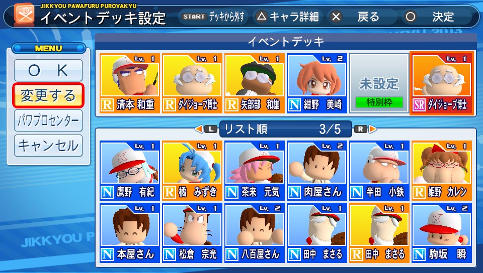 オールA選手を目指して! ★ゲーム 実況パワフルプロ野球 2014年01月18日 つい最近、いつだったか忘れちゃったけど配信された聖ジャスミン学園編のサクセスをプレイ!2013のサクセスはグラウンドレベルが上がると練習効率も上がるので最初のうちはのんびりと遊んでます。ジャスミン学園は最近まで女子高だったため部員は主人公をのぞくと全員女子でまさにハーレム状態。シリーズおなじみの親友矢部君も女の子として登場します。私の大好きなメガネっ子なんだけどなんか違う!じたばた! デッキも入れられるカードは女のキャラのみ。選手以外は男でも可。ダイジョーブ博士入れられないのは厳しいもんね…と、忘れてたけど本日は土曜日なので天才型の選手が出やすい日となっております。と言いながら2013で一度も天才型の選手出たことないけどwサクセス進めていくと部員が5人しかいない模様。そこで自分が部員を集めることに。※サッカーしたり空手勝負してミスるとボコボコにされたりはしません名前のあるキャラはパワプロシリーズの歴代彼女候補かな。そういうキャラは部員にするのに多少苦労します。2月までに投手3人、野手9人集めないとゲームオーバーっぽいので結構緊張してよいよい。 残念メガネっ子の矢部田さん以外にも出てくるメガネっ子の美藤さん(通称ちーちゃん)一打席勝負に勝つと部員になってくれます。自分は下手っぴなので3度勝負するはめにwジャス学は練習教材がもらえて練習レベルが上がりやすく、ラブパワーのイベントも結構頻繁に起こったのでなかなか選手は作りやすそう。余談ですが本家ジャス学の方の新作も期待しております。ヴァンパイアともどもカプコンさんお願いします。 話それたけどこちらが完成した選手である。なぜかもらえる変化球ポイントによりサークルチェンジ投げれる外野手が完成!ってか、オールA選手遠すぎー!!w PR