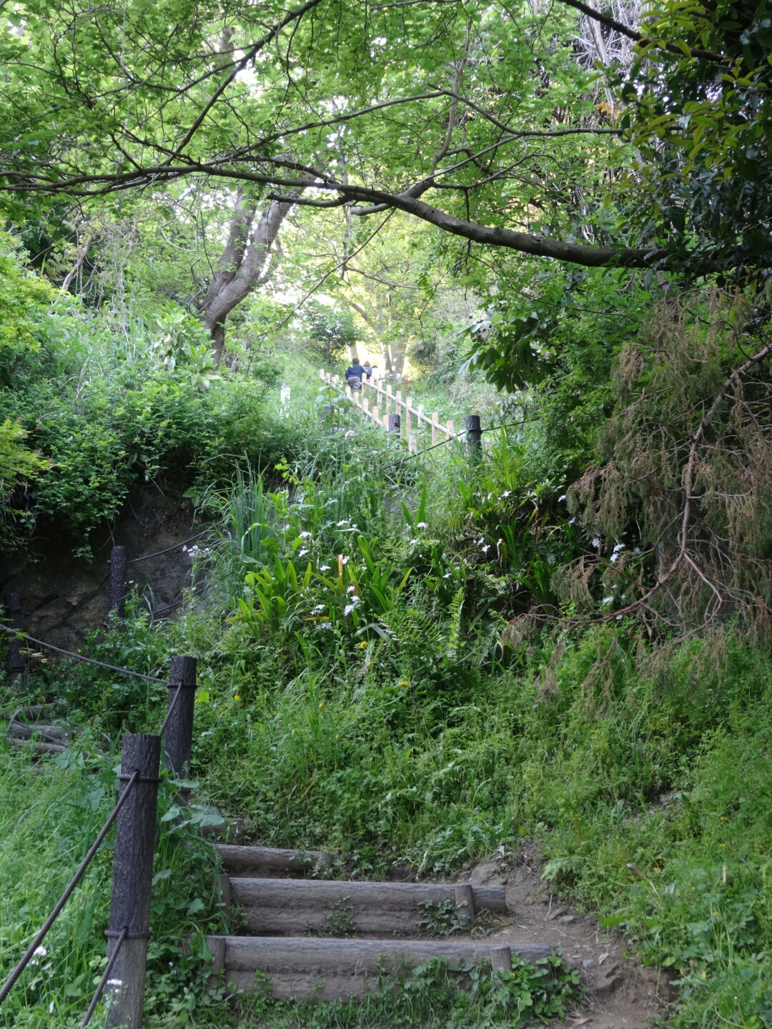 ハイキングやっほー! ★外出 鎌倉 2014年04月27日 今日はふらふらと鎌倉に行って参りました。(調子に乗ってパシャパシャしてしまったので写真多めです) 文学館で新しい催し物をやってるみたいなので行こうかなと思ったけど、5月のバラ祭りも見に来たいしまた今度でもいいかな~とテクテク歩いてたら着いたのは… 大仏ハイキングコースいい天気だとハイキングとかしたくなっちゃう。そう、ぼっちでもねw 全長約2㎞のコースだけど山の中なので結構上ります。最初だけだけど普段運動不足の人だといい運動になるレベル。老若男女問わず杖をついたおじいちゃん、おばあちゃんもいたので気軽に楽しめるかと運動できる格好じゃなくてもOK。自分も普段着で上りましたし。 このハイキングコースには二手あって、片方が銭洗い弁天の方に出るハイキングコース。もう片方は国指定の史跡"大仏切通"に出るコースがあります。まずは自分の大好きな切通のある方へ行ってみましょう。 舗装とか一切なしの山道。こちらは最後まで行くと鎌倉の外れに出るのであんまり利用者は少ないかな。多分こっちの道を選ぶ人は同じ人種だと思うw こういう岩を切り開いた感じがたまらなく好き! 岩肌と緑のコントラストがもう!廃墟好きな人とかいるけど自分はそれでいうと切通フェチなんだろうな。こっちの大仏切通は歩いて10~20分で着けます。人も少なく静かな場所で聴こえるのは風の音や鳥のさえずりだけのような世界。 頭の中をリセットできる空間がここにはあると思います。気になる人は運動も兼ねて足を運んで見たらよいです。おススメです さて、来た道を戻って今度は本当のハイキングコースへこちらの方がちょっと道が整えられてて歩きやすいですね。 こっちがメインのコースなので利用者も多いです。家族連れからカップルにどこかの大学のサークル仲間かな?って人たち。それに自分みたいなぼっちさん。中にはジョギングしてる人なんかもいてすごいなと思いますwで、なにが面白いって山だとそんな人たちが挨拶してくれるんですよね。「こんにちは~」とか「どうぞ~(道を譲って)」って言ってくれたり。山の中にいると人と少し距離が縮まった気がします。挨拶が気持ち良くて嬉しい。 自然だけじゃない癒される何かがきっと山にはあるんだろうな…( ゚д゚)ハッ! 今まで山を歩いてたはずがここは一体 ちょい生飲みビール(250円) レバー(110円) ねぎま(120円)歩き疲れたので前から気になっていたレンバイの焼き鳥屋さんへ。ハイキングコースは30~40分。そこから歩いて20分ぐらいかな?お洒落とは真逆な一杯飲み屋って感じのとこだけど逆にそれがいい! 鎌倉中央食品市場(レンバイ)の中には美味しいシフォンケーキが食べれるお店(鎌倉しふぉん)もあるし、野菜いっぱい売ってるしでいい所です。自分もまた鎌倉野菜の温野菜セット(300円)買っちゃった♪鎌倉よいとこおいでませませ