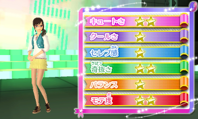 ガルモで春物コーデ ★ゲーム 3DS 2014年03月26日 わがままファッションガールズモード(通称ガルモ)のタイトルアップデートが着たので早速してみました!これは後発で海外で発売されたガルモに追加されたモードを日本でも遊べるようになるアップデートなんですが、すでにソフトを持ってる人は無料で遊べる太っ腹仕様となっております。軽く触ってみたけど"夢彼氏"が面白い。文字どおり彼氏ができたら~ってのを妄想してコーデしたりデートしたり。感じとしては浜辺でボクをつかまえてごらんよ~あはははは~と言った感じ。痛いですwただ、彼氏のエディットはあんまりいじれないというか良いパーツが個人的に少ないので残念でした。次回作出たらもっと色々できたらいいな! 「ゆた。あんたセンス悪いのよ」とでも言いたそうな店長ちゃんの目アップデートで久しぶりにガルモしたら、春物のコーデをしたいな!とテンションが上がってしまって、新しく追加された"DJ・ナオトのコーデチェック"を早速受けてみることに。 相変わらずすごい格好であるwコンテストみたいに決まったテーマがある訳じゃないので、自分の思い描いたコーデをすることができます。全身映ったスクショを撮るのに便利そう 黄色のティアードのスカートが春らしくてイイかなって。緑のデニムベストも適当に着せちゃったけど結構気に入ったコーデ!あとは赤いメガネですかね。赤いメガネ!で、DJナオトの診断結果は… 微妙なんか…私の通信簿を思い出しますね…まあ、フェミニンとかエスニックとか何も考えてないコーデだけどさ今見るとスニーカーが芋っぽいけどその芋っぽさ+メガネがイイんじゃないか!そして、このコーデチェック下画面でDJナオトのコメントが入るんだけどデンジャラス・ラブリー!オリジナルティバツグン!なしじゃない!なしじゃないよ!!なしじゃないよって二回言うなw うーん、結構いい春物コーデだと思ったのにな。今年流行りの花柄を入れなかったのがいけなかったのかな?むむむ…残念だけど久しぶりにやったガルモはやっぱり楽しい