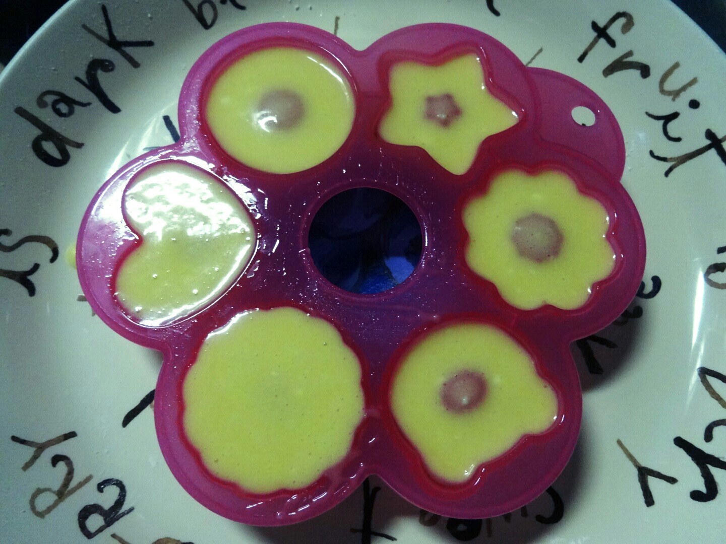 焼きドーナツリベンジ! ★日常 料理 2014年06月21日 この間、ドーナツを作ったはずがベーグルになってたでござるのリベンジをするために再度焼きドーナツ作りに挑戦しました。前回はホームベーカリーで生地を作って成形して焼き上げたけど、今回はドーナツ型に生地を流し込んで焼いてく手法にするぜー!〖材料〗・卵1個 ・グラニュー糖 45g・牛乳 40g ・薄力粉 65g・サラダ油 15g ・無塩バター 25g・クリームチーズ 47g・ベーキングパウダー 小さじ1/4 生地作り。卵を割ってボウルの中でしゃかしゃか。泡立て器ってめっちゃ腕が痛くなるけど鍛えてるせいか全然痛くならなかった。「そうか、オレはこの日のために鍛えてきたんだな…」 卵を混ぜたらグラニュー糖を入れて白っぽくなるまでかき混ぜたら、そこに牛乳を加えて混ぜます。バニラオイルがあったら少量入れると◎ウチも確かあると思って入れようと思ったらラムダークだった…w 牛乳と混ぜあわせたら粉をふるいます。これは最初の卵を割る前にやっておいた方がいいかも。しかし、ふるいにかけた粉ってキレイよね。誰も踏んでない新雪みたいで踏みたくなりますよね(・∀・)! 先ほどの生地に踏んでない方の粉を入れていきます。円を描くように混ぜると吉です。粉っぽさがなくなるまでかき混ぜる。ただ、必要以上にかき混ぜるのはダメな模様なのでほどほどに。 自分はこんな感じのところでやめておきましたよ。 生地が混ぜ終わったら油分をプラスしていきます。無塩バターを湯せんして溶かしてサラダ油と合わせておきます。これも最初の卵割る前にやった方が良さゲかも。油分の準備ができたらさきほどの生地にゆっくり油分を入れながらかき混ぜていく。 ここでなかなか使う機会の持てないやつ"クリームチーズ"をバターと同じように湯せんして溶かしてみました。本に載ってた行程と違うので失敗するかもしれないけど、こいつ使わないと冷蔵庫の番人になっちゃうので…誰か、料理詳しい方いたらクリームチーズ使うレシピご一報くださいw 溶かしたクリームチーズを生地にさっくりと混ぜあわせたら生地が完成!あとは生地をドーナツ型に流し入れてオーブンで焼くだけ。 使うのはこちらのドーナツ型。おもちゃみたいな型だけど、これでも何軒も探し回ってやっと見つけた型なんだぜ…。100均だとあまりドーナツ型ないね。ケーキとかマフィンの型ならどこでも置いてるんだけど。自分はダイソーで見つけたけど2店舗目のダイソーだったので店舗によっても変わりそう。 サラダ油を軽く入れてキッチンペーパーなどで型にぬって、そこに生地を流し入れます。…が!ここで問題が。型の説明書きに目を通したら〖この商品は電子レンジ専用です。オーブンなどでは使えません〗の文字が… なんてことだ、なんてことだ… なんだこの女児が作ったかのようなドーナツは…全然思い描いた焼きドーナツの色写真と全く違うものが出来てしまいました。焼き色がついた美味しそうなのを夢みてたけど…。100均のお店のお姉さんも「やだ、このオジサンなんでこんな小学生女子が使いそうな型買ってるの…」とか思われていたのでしょうか。もうやだ、あのお店行けない…弁解すると、味の方はめっちゃ美味しかったです。こんな形でもちゃんとクリームチーズ入りのドーナツなんだぜ。けど、これじゃあやっぱり納得いかないよ…。次はケチらずちゃんとしたドーナツ型買いますw
