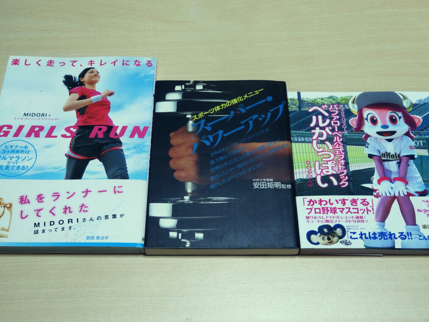 最近買った本など ★日常 雑記 2014年06月02日 この間、ブックオフ巡りも兼ねてランニング行った時の戦利品をザッと読んだのでその感想をば。あらためて見ると趣味全開だね… ・楽しく走って、キレイになる GIRLS RUN (新星出版社)ランニングの指南書。ランニングしてない実際のモデルさんが走り始めて、フルマラソンに挑戦する過程が書かれております。ランニングのフォームや走る時に便利なアイテムなど書かれてていいけど、一番いいのは大会参加に向けて3ヶ月想定でサンプルの練習メニューが載ってるトコロ。フルマラソン出るならこんなに走るんだと距離を見て分かったし、自分の体力がモデルのキレイなお姉さんよりないんだなとタイムを見て判明。今までタイムとか気にせずに走ってきてたけどちょっとタイムも気になったよ大会もこの本で挑戦したのが"湘南国際マラソン"とモロに地元なのがよかった。地元民だけどそんなデカいマラソンがやってるの知らなかったけどwしかし、走るだけなのに結構参加費かかるのね。10kmでも6,500円とか。うーん…・スーパー・パワーアップ (CBS・ソニー出版)ランニングの本はランニングを始めると仲間が出来るなんて眉唾なことが書かれてるけどこの本はその真逆。トレーニング中は集中してべちゃべちゃとお喋りなぞしないように試がけたい。となんともストイックな一冊。なかなか最近の筋トレ本でここまでハッキリと言いきるのも珍しいなと、思ってよく見てみたら1990年の本でした。古いっ!表紙にハンマー投げ室伏の明かしたスペシャルメニューとあって惹かれたけど、中を確認したらビックリ。 室伏がHAGEてる!?どうやら室伏の父ちゃんの模様。はじめて拝見したけど室伏にソックリねw 練習メニューも載ってるけどスクワット255kgとか室伏の怪物遺伝子も頷けるものがありましたよ…。ものすごく古い本だけどトレーニングメニューの充実っぷりは目を見張るものがある。買ってよかった。・ベルがいっぱい (PHP研究所)オリックスの球団マスコットバファローベルの公式フォトブック。何かに目覚めそうな写真がいっぱい。坂口と西のインタビュー、オリックスのチアへのインタビューもあり。(一部で人気なReika嬢は加入前なのか登場しません) こんな本が出版されるのもベル人気のおかげか。ホークスではまず出ないでしょうw 不人気の兄であるブルくんは大阪だとベルたそより人気とかしかし、ベルたそって牛型のロボットっていう設定だったのねしかも小学生とか。設定に驚いたけどそれだと燕は小学生のスカートの中を覗いてたんだね…。いろいろひどいwどれも108円とお買い得でした。なぜかベル本は105円ブックオフは掘り出し物を見つけるのが楽しいですね。貧乏くさいけど自分は宝探しみたいで好きです! PR