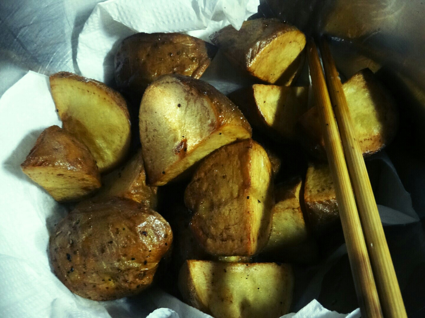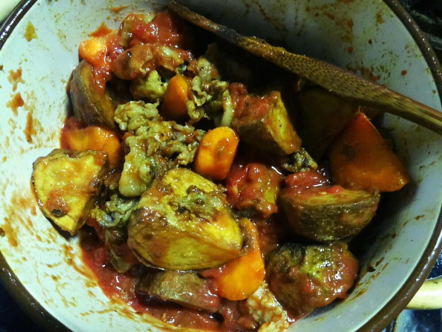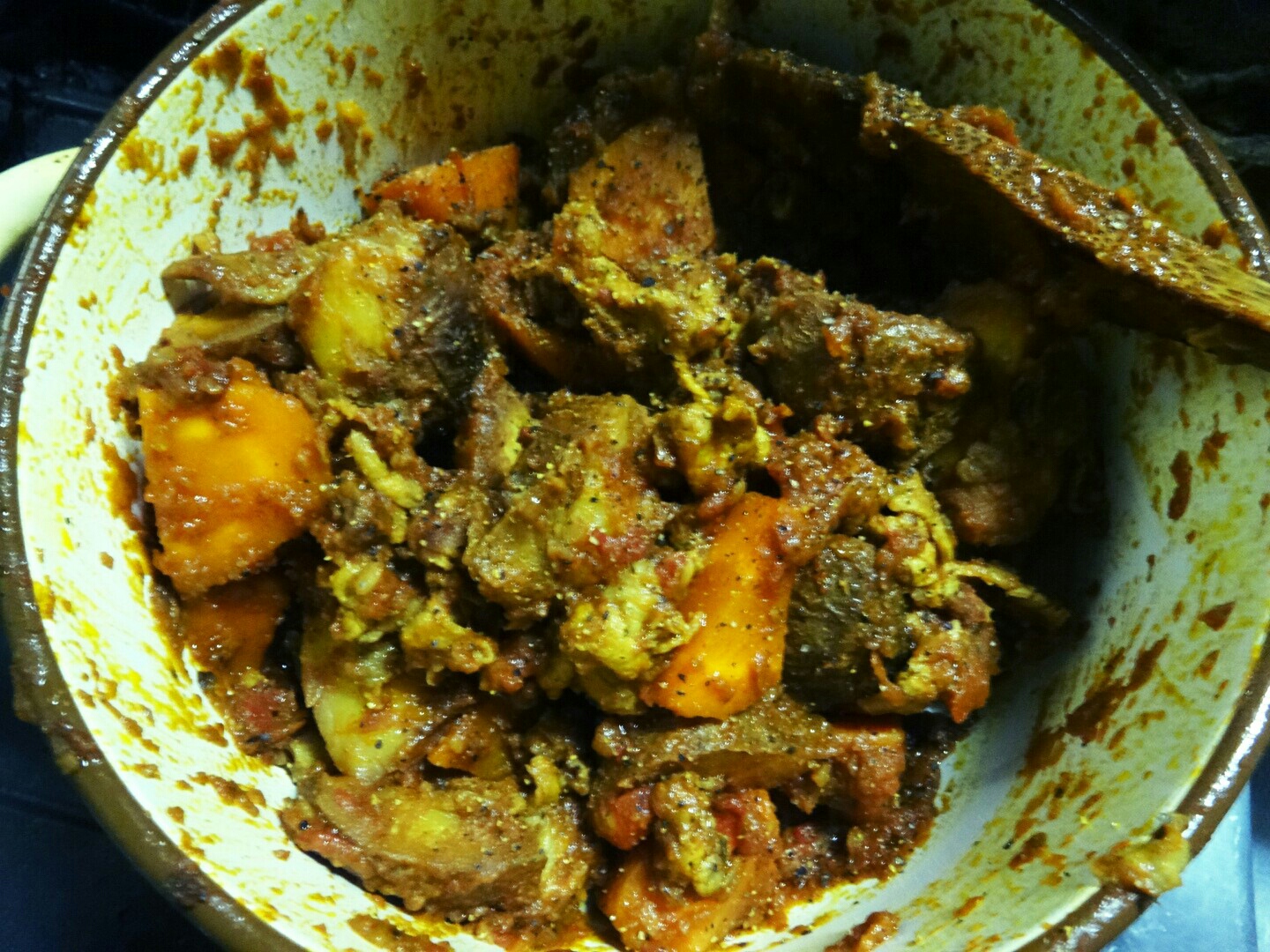 本格的なカレーとは何ぞや ★日常 料理 2014年06月22日 最近読んだ本に興味深いことが載ってました。カレーの本なんだけど、『2つのスパイスと1カケのカレールーでとびっきりおいしい!』と。自分は自分の作るカレーは母が作るカレーより美味しいと思ってる。おふくろのカレーよりもオレのカレーなのである。でも、スパイスから作ってるとかそんなことはなく、市販のカレールウをバリバリ使う。隠し味にソースやヨーグルトを使うとかあるけど、自分はやったりやらなかったりでその日の気分で変わります。ただ、変わらないのは肉や野菜を煮る時にトマトのホール缶をひと缶入れます。必ず。これは昔、NHKの料理番組で料理研究家の牧野哲大さんがビーフシチューを作る際にトマトのホール缶を入れてて、カレーでやったらどうだろう?とやってみたんですよね。辛さもだけど味がマイルドになって好きで入れてます。まあね、そんなにカレー作りに時間も手間もかけてませんねwでも、スパイスで1からカレーを作るってのもやってみたかった!(だけど難しいのは嫌だし、手間暇かかるのも嫌~)そこで前述のたった2つのスパイスと市販のカレールーを1カケでとびっきりおいしかったら自分としては理想的なんですよ。なので、早速挑戦してみました(・∀・)!前置き長かったけどwまず必要な材料は ・カレー粉 ・クミンシードスパイスはこれだけ。あとは仕上げにカレールーを1カケ入れる。これだけで本格的なカレーに!?と思うけど、他にもポイントがあるようで。もう1つのポイントになる"玉ねぎの蒸らし炒め"を作ります! と、その前の下準備。玉ねぎはみじん切り、にんじんはひと口大の乱切り、赤唐辛子は種を取りのぞいておく。ブタ肉は塩こしょうしときました。 カレーの主役のじゃがいもは四つ切りにして油で揚げておきます。いやあ、揚げたお芋とかめちゃ美味しそう!と思いながら揚げてたけど、揚げポテ+カロリー高めなカレーとか自分のお腹がポテっとしそうな…だが、それがいい!(よくないけどw お肉は油をひいて揚げるような感じで炒めてから、炒め終わったらフライパンから取り出しておきます。玉ねぎ以外の下準備が終わったら、やっとこ玉ねぎの蒸らし炒めを作っていきます! フライパンにサラダ油をひいて油があたたまったらクミンシードをJump In!火加減はフライパンがあたたまったら弱火にして、油にクミンシードの香りや薬効を溶かし出すように炒めていきます。 パチパチってクミンシードがはじけだしたら、みじん切りにした玉ねぎを入れる。注意点としてはこのとき煙が立つほど炒めちゃダメな模様。クミンシードの香りや風味が飛んじゃって、焦げっぽい味になるので× 玉ねぎを加えたら中火でサッと炒めます。テレビとかだとサッと炒めますって映像だからこのぐらいなんだなって分かるけど、本とかで文字で書かれてるとサッとってどのくらいだよぉ!と思っちゃうのは自分だけではないはずwサッと炒めたらフタをして弱火で蒸らします。焦げないように時々フタを開けてじっくり炒めます。時間ある人は一時間じっくり、時間ない人は20分間頑張るべしべし。一時間炒めると素晴らしくおいしいカレーを作る元になるそう。 20分ほど炒めた状態がこちら。忙しかったので20分にしときました。(野球観戦的な意味でw) 冷凍保存も効くようでジップロックなどに入れて冷凍しとけば一か月保存できるそう。時間ある時にでも一時間炒めたの保存しといたら、次に作るとき楽チンだねぇ。 忙しくなるはずがホークスの投手陣が早々と焦げ臭くなって大差ついてしまったので40分ほど炒めましたw どうやら自分が作るレシピは赤唐辛子と玉ねぎを一緒に炒めるのが正解だったようです。基本は入れないみたいだけど、気がついて慌てて入れましたよ… 玉ねぎの蒸らし炒めができたらそこにショウガとニンニクのすりおろしを入れて、ひと口大の乱切りにしといたニンジンを加えて2分ほど炒める。炒め終わったら、炒めておいたお肉、揚げておいたジャガイモを入れます そこにカレー粉(大さじ4)を入れて香りが立つまで炒めます。自分は写真で分かると思うけど煮ていく段階でフライパンから鍋に変えたけど、手間暇かけた玉ねぎの炒めたうまみとかもフライパンについてたと思う…。なので、玉ねぎ炒めた鍋orフライパンで煮た方がより美味しいと思います カレー粉の香りが立ってきたらカットトマトの缶詰を加えて、弱火で1時間煮る。ビックリしたのは水とか加えないでそのままトマトの水分だけで煮ていくとか! この程度しか水分なくて焦げたりしないのかな。と心配になってしまいましたよ 1時間煮た状態がこちら。と言いたいところだけど30分煮た状態で火を止めました。ウチのコンロっておバカでして…細かい火加減が苦手で、弱火とかにして煮ようとすると数分もすると勝手に火が消えて、ピーピー鳴り出す仕様で…ちょっと水加減がこれでは1時間もたなさそうだったので30分煮です。家々で
