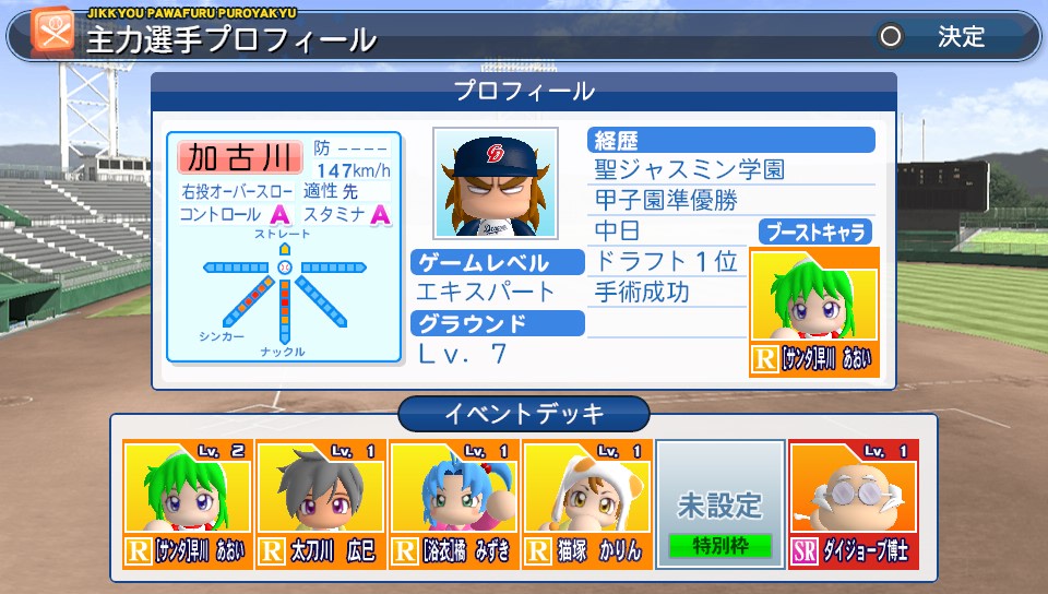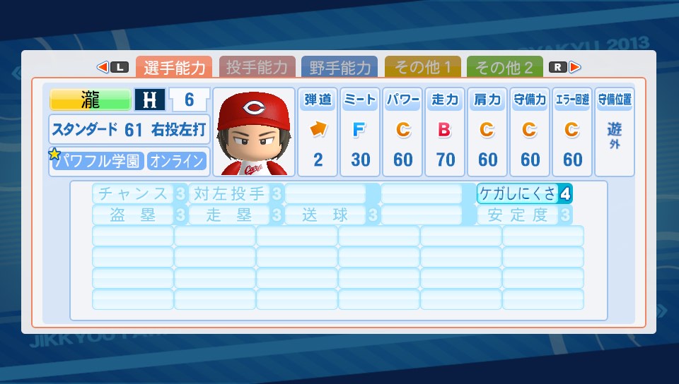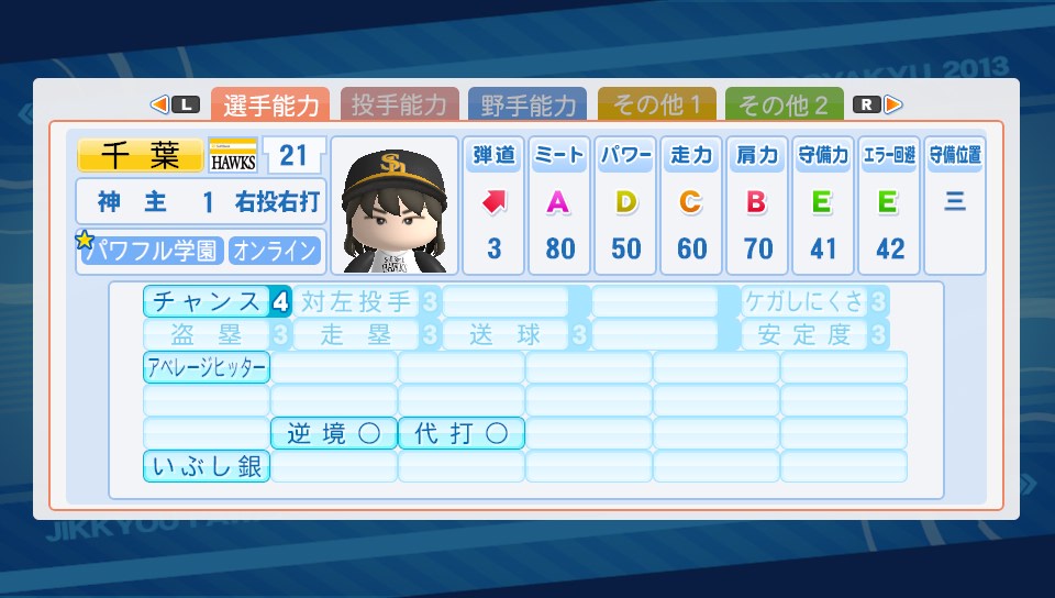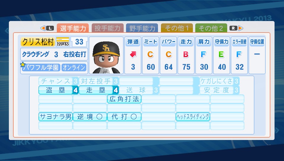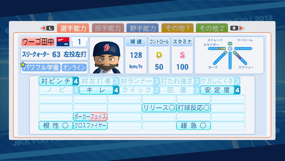 オールA選手を目指して! その4 ★ゲーム 実況パワフルプロ野球 2014年01月26日 今日はゲーマーらしくお出かけしないで部屋にこもってサクセスしておりました。パワプロ2013ではサクセスで作った選手たちでチームを作って(パワチャレ)、そのチームで他の見ず知らずの人たちと対戦(自操作なし)ができるのですが、やっとこスタメンが自分が作った選手たちで埋まりました。今日できたのは相変わらずの野手を3人と、気分転換に作った投手1人。 徐々に強い選手が作れるようになっていってる感があまりしないけど気にしないことにする…。オールAどころかオールCすらまだ遠い(; ´∀`) ピッチャーは気がついたら4人しかまだ作ってなかったので先発で長く投げれそうなの?を作成。この選手作ったら"Sランカー現る"(サクセスでSランクの基本能力を持つ選手を作成する)のトロフィーが解除。Sランクって投手のスタミナでもいいのね。これなら簡単。今なら節分ゲドーくんも出てくるので狙ってなくても取れるかもだし。あ、それとパワチャレでAランクになりました♪対戦するチームも強くなってきて対戦相手の方の作成した選手を見るのがより楽しくなってきました。ちょろっと気になった選手を紹介 このデッキでもこんな強い選手作れるの!って参考になります。天才選手でもないのにこの強さは手術成功の恩恵がそんなに大きいのかなあ?(先生、自分も早く手術成功したいです…) ゲームレベルノーマルでオールA選手!?グラウンドレベルもそんなに高くないし、デッキもそこまでレア度高くないので、上手くいけばオールA選手も可能なのかなぁ…こちらの選手は手術もしてないのが面白いところに思えます。総括すると天才選手or手術成功がオールAへの近道かなと…メモメモ。なにやら光明が見えてきましたね。ふふふ! PR