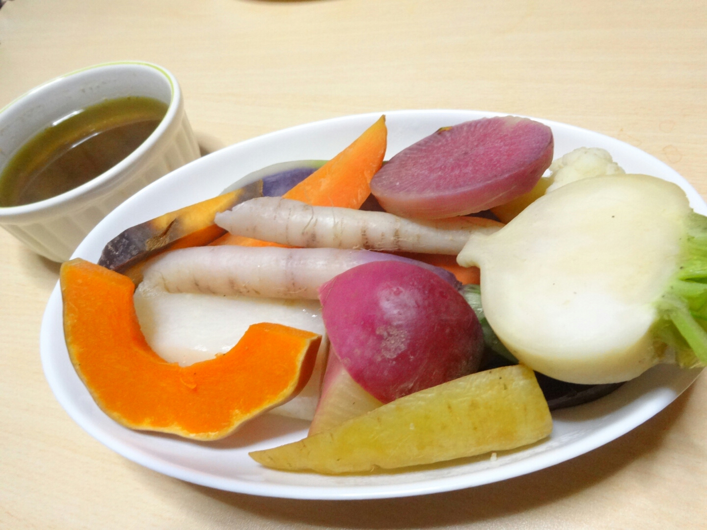 バーニャカウダらしきもの ★日常 料理 2014年01月27日 お洒落度ゼロなバーニャカウダを作成。バーニャカウダってより野菜のドカ盛りであるw見栄えは自分が作ったから微妙だけど、お味の方は大変おいしゅうございました。ソースはアンチョビとにんにくとオリーブオイルで作ったけど、何にもソースつけないで食べても美味。野菜は一昨日鎌倉に行ったときに買いました。鎌倉市農協連即売所、通称レンバイで見つけた"大人気"らしい鎌倉野菜の温野菜セットこれで250円!かつ、このボリュームの鎌倉野菜が入ってて大満足でした。お店の人いわくフライパンにオリーブオイルを少し入れて1~2分焼いてから、お水を入れてフライパンに蓋をして7~8分ほど蒸すと美味しく食べれるとのこと。自分は軽く塩ゆでしてそのまま食べちゃったけど、生でも食べられるらしい。ブロッコリーとかは茹でた方がいいけど。冬は野菜が美味しくていいですね♪ PR