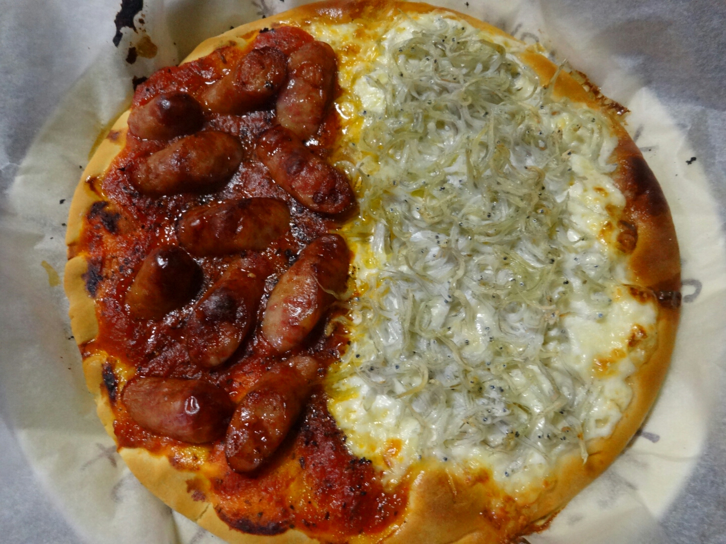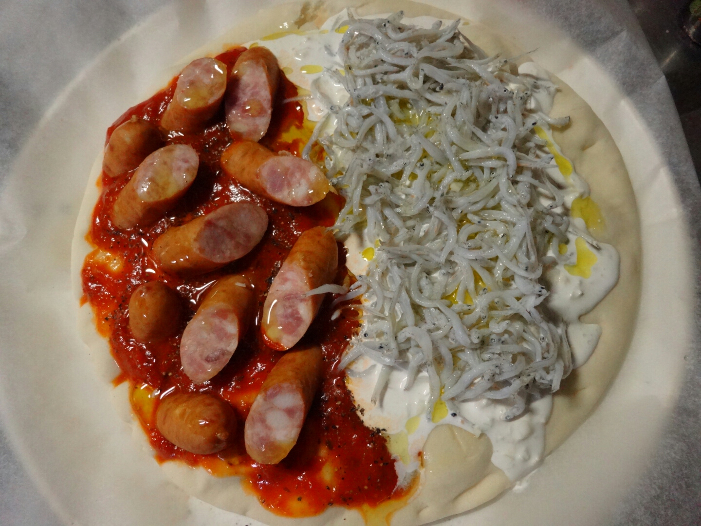 ハーフ&ハーフ ★日常 料理 2014年02月05日 この間、男子ごはんで作ってたピザが食べたくなったのでマネして作ってみた。番組だと生地からちゃんと作ってたけどそれは私が作るのでお手軽(手抜き)仕様ですw豚のひき肉買うの忘れたのでソーセージで代用。ドイツ人もサルシッチャ食べてソーセージって言ってたからいいのだ。使うのは静岡県民はみんな大好きという御殿場高原のあらびきポーク。静岡の人が関東に来て売ってないことに驚くソーセージらしい。近所のスーパー調べだけど本当かな?wサルシッチャのトマトソースもトマト煮詰めるのが面倒だからピザソースにこれまたにんにくのみじん切りじゃなく、にんにくおろしをJump in。もはやサルシッチャではない気がするけど気にしないことにする。そのかし、しらすチーズの方はちゃんと作った。ピザ用のチーズを細かくきざんで生クリームの中に入れて混ぜまぜ。ピザ用の生地にオリーブオイルを少量塗って…その上にトマトソースという名のピザソース、生クリームとチーズのソースを生地の半分ずつ塗って、トマトソースの方に黒こしょう、生クリームの方にお塩をかけておきます。で、その上にソーセージとしらすを置いたらオリーブオイルを少量かけてオーブンへGO!!完成。レシピだとサルシッチャの方にはパセリ、しらすの方は万能ねぎを乗せてすだちを搾りかけて完成なんだけど無いので(略 サルシッチャの方はシンプルなソーセージのピザになってしまってて、こんな味じゃないと思うけど、しらすの方は生クリームの甘さとしらすの塩気が混ざってあまじょっぱいピザで新しい。味の濃いめのピザのあとに生クリームの方を食べると相性がよくてどちらも美味しく食べれました♪餅ピザの時は半分残して次の日にもう半分食べたんだけど、今回のやつは一人で全部食べてしまった…(>''A`)>! PR