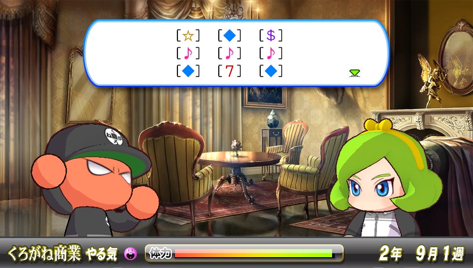 スーパーエースを目指して! その2 ★ゲーム 実況パワフルプロ野球 2014年04月03日 本日、くろがね商業編が配信されました。配信記念のキャンペーン(*)がイイですね!なんとグラウンドの土を10個もプレゼントとか太っ腹!くろがねクリアの回数でアイテムももらえるみたいで、中にはSRチケがいただけるとかちょっと頑張ってみようかなと思っちゃう。くろがね商業は今までのサクセス校も独特だったけど、ここは際だってますね。"Kマネー"っていうくろがね商業の中でだけ使えるお金の概念があって、それがあれば何でもできる高校。スタメンを監督から買ったりとかもあるw値段高いけどセンス○になるアイテムや金得になれるアイテムなどもあったり Kマネーが大事な高校ですが、Kマネーを集めるには…練習をすることでももらえるけどそれはちょびっとだけなので、月に一度開催される"ゲーム"で稼ぐことがメインになりそう。ゲームって言ってもパワポケみたいにパズルしたりRPGしたりってことじゃなく、モグラとモゲラみたいな簡易的なミニゲーム。ただ、種類は結構あって自分がやったのは…スロットマシン、ナンバーくじ、ルーレット、それに季節ごとの大きなゲームイベント(秋のゲーム祭り、学年末ゲーム祭り)で行われるブラックジャック、ビンゴ大会と遊べるゲームは多め。 内容としても簡易的なものなんだけど面白く、ギャンブル要素のある高校ですね。個人的には今まで配信されてきた高校の中で一番好きかもドラクエで物語そっちのけでカジノに行っちゃうゲーマーはたぶん好き。 一周してできた選手。かなり弱いwでも、特殊能力は自力で取れるのは全て取れました。マネちゃん様様!パワチャレだと特殊能力の数と変化球の種類、変化量で使えるか判断されている様なので、パワチャレ用の選手を作るのにも向いてそう。運要素強め?だからスーパースター作成には向いてなさそうだけどでも、よりゲーム性が上がってて楽しい高校になってるのでスーパーエース狙いながらワイワイ遊べたらいいかなヽ(・∀・)ノ