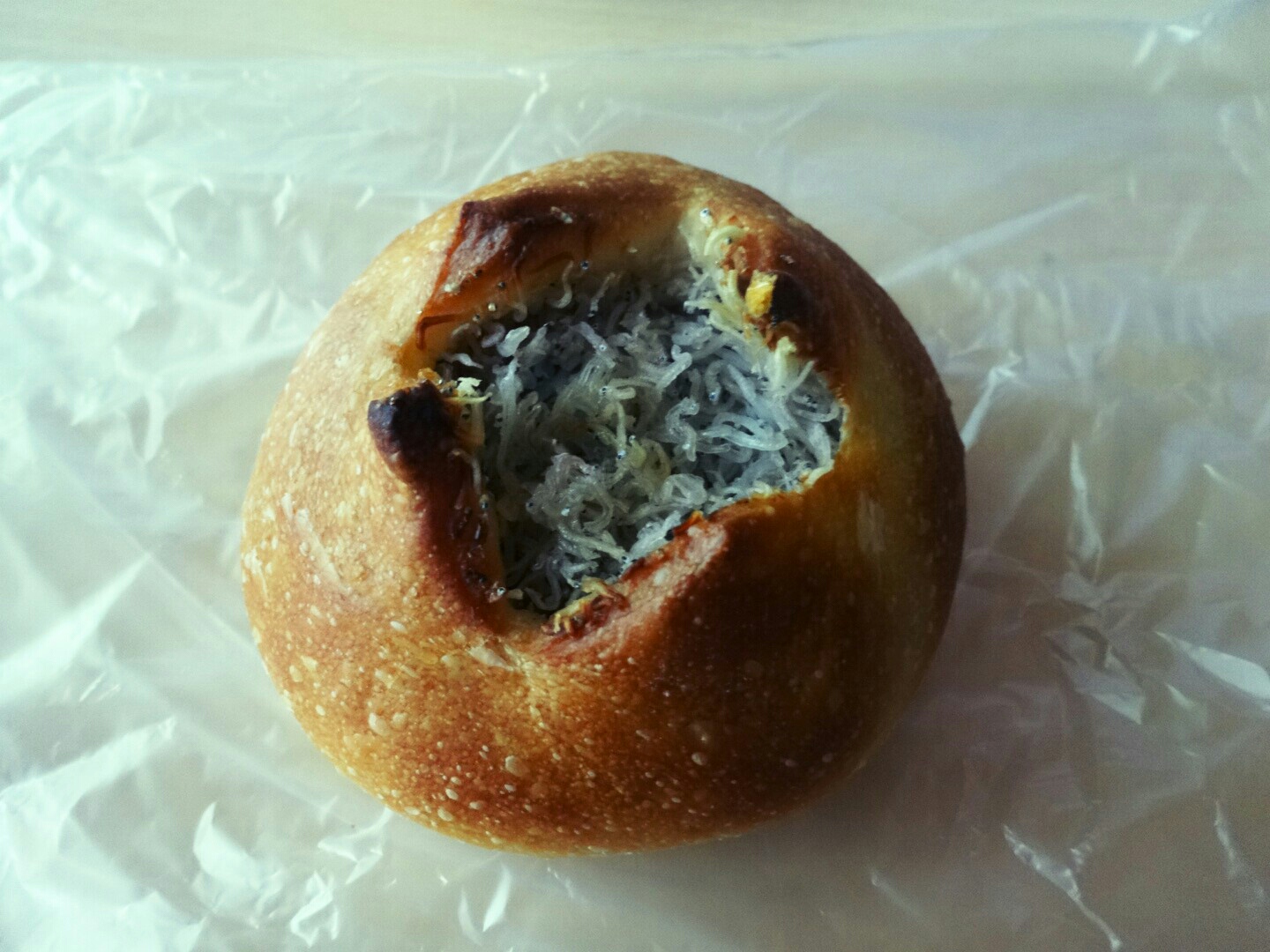 さむらい。パンの中に見えるのは湘南といえばな"しらす"。183円