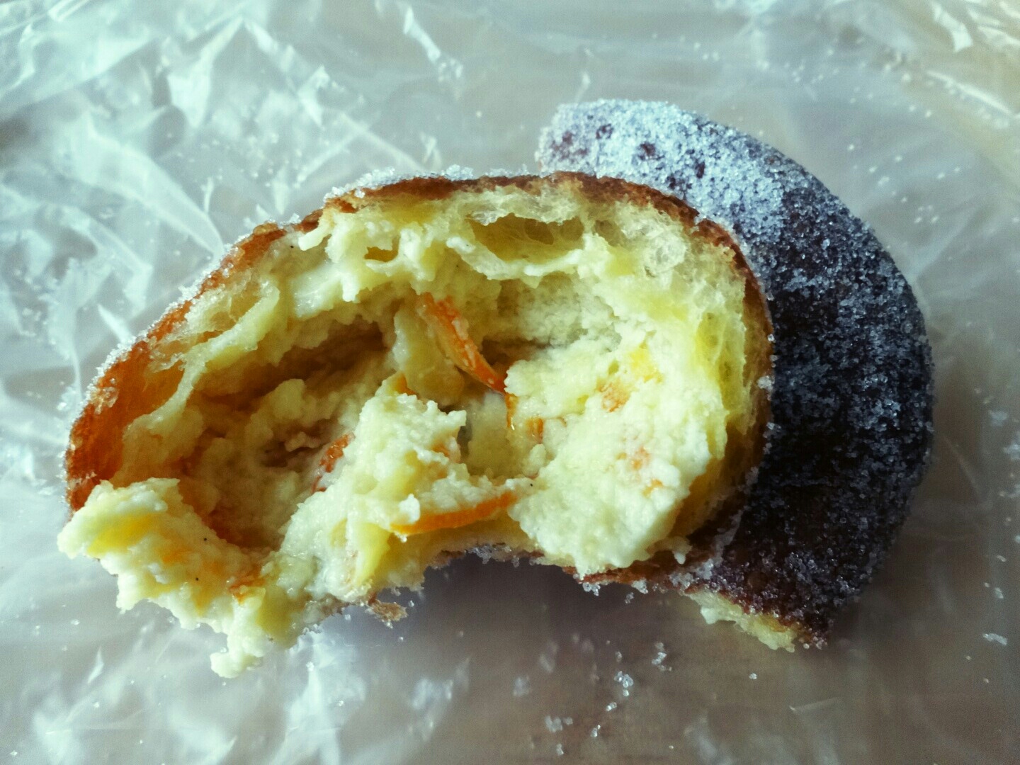中にはオレンジピールとカスタードとクリームチーズが入っております。