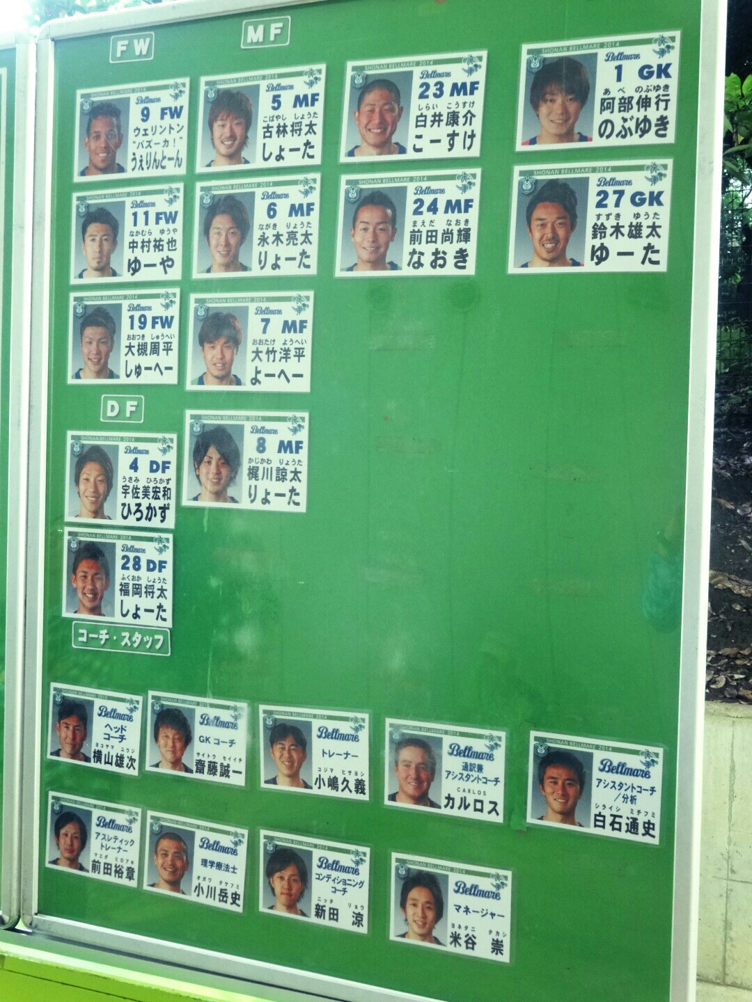 ベルマーレの選手たちが載ったボード。名前がひらがなで大きく書いてるのは