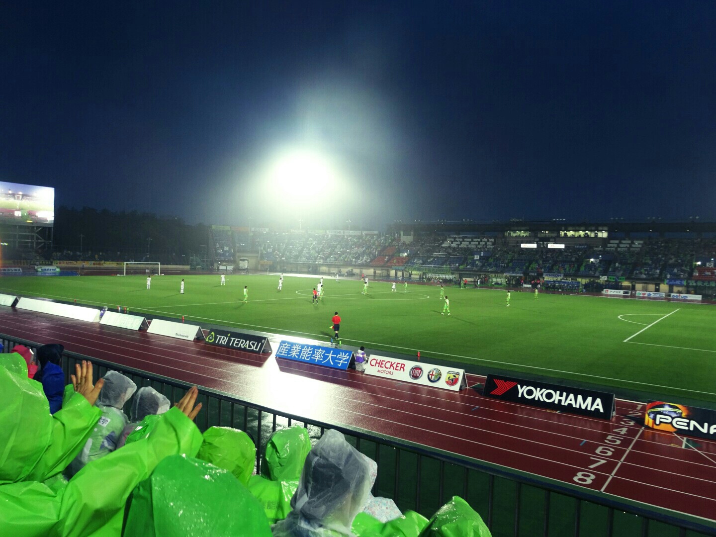 中央よりじゃないのでサポーター席がよく見えました。雨なのに