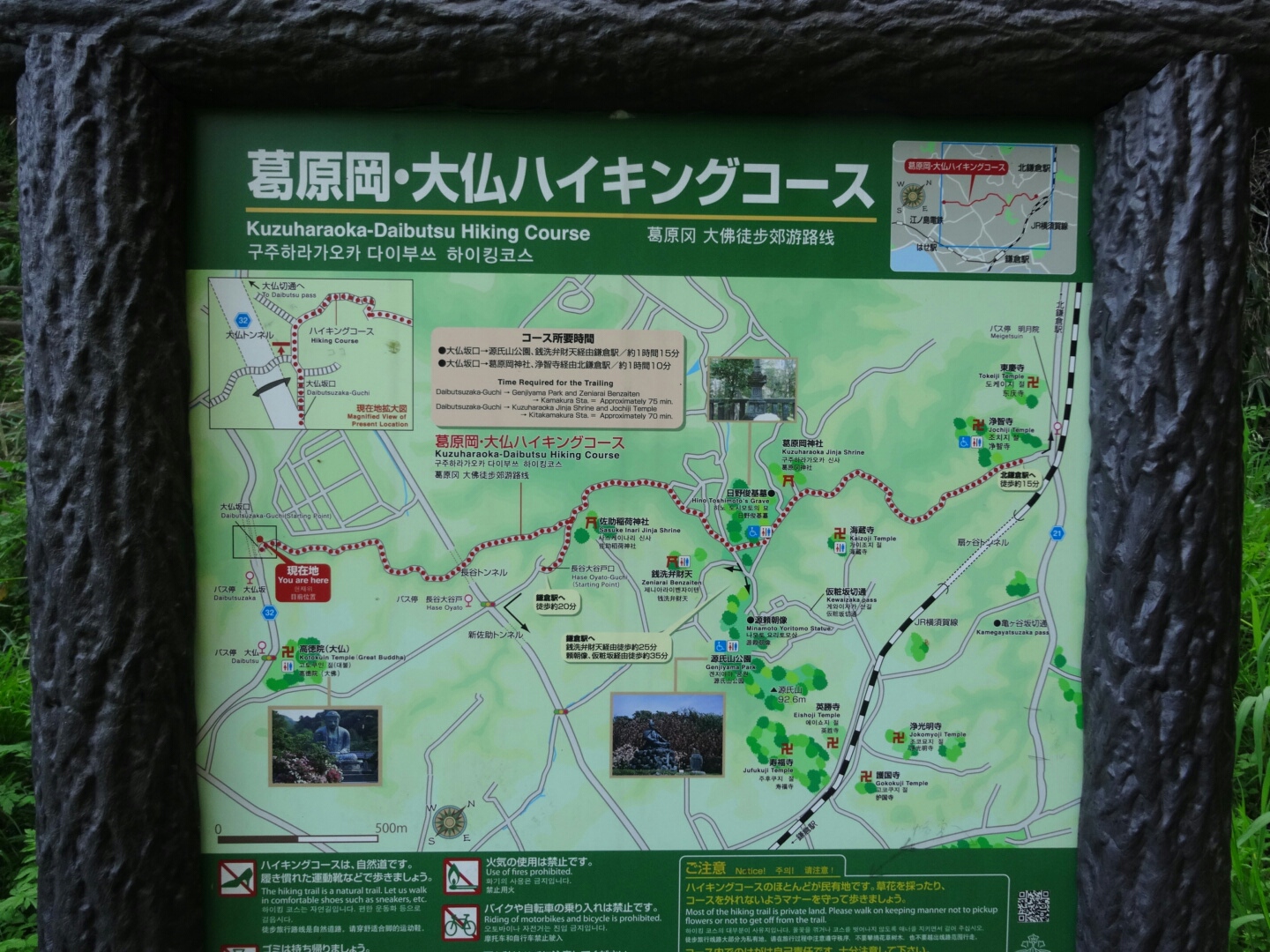 ハイキングやっほー! ★外出 鎌倉 2014年04月27日 今日はふらふらと鎌倉に行って参りました。(調子に乗ってパシャパシャしてしまったので写真多めです) 文学館で新しい催し物をやってるみたいなので行こうかなと思ったけど、5月のバラ祭りも見に来たいしまた今度でもいいかな~とテクテク歩いてたら着いたのは… 大仏ハイキングコースいい天気だとハイキングとかしたくなっちゃう。そう、ぼっちでもねw 全長約2㎞のコースだけど山の中なので結構上ります。最初だけだけど普段運動不足の人だといい運動になるレベル。老若男女問わず杖をついたおじいちゃん、おばあちゃんもいたので気軽に楽しめるかと運動できる格好じゃなくてもOK。自分も普段着で上りましたし。 このハイキングコースには二手あって、片方が銭洗い弁天の方に出るハイキングコース。もう片方は国指定の史跡"大仏切通"に出るコースがあります。まずは自分の大好きな切通のある方へ行ってみましょう。 舗装とか一切なしの山道。こちらは最後まで行くと鎌倉の外れに出るのであんまり利用者は少ないかな。多分こっちの道を選ぶ人は同じ人種だと思うw こういう岩を切り開いた感じがたまらなく好き! 岩肌と緑のコントラストがもう!廃墟好きな人とかいるけど自分はそれでいうと切通フェチなんだろうな。こっちの大仏切通は歩いて10~20分で着けます。人も少なく静かな場所で聴こえるのは風の音や鳥のさえずりだけのような世界。 頭の中をリセットできる空間がここにはあると思います。気になる人は運動も兼ねて足を運んで見たらよいです。おススメです さて、来た道を戻って今度は本当のハイキングコースへこちらの方がちょっと道が整えられてて歩きやすいですね。 こっちがメインのコースなので利用者も多いです。家族連れからカップルにどこかの大学のサークル仲間かな?って人たち。それに自分みたいなぼっちさん。中にはジョギングしてる人なんかもいてすごいなと思いますwで、なにが面白いって山だとそんな人たちが挨拶してくれるんですよね。「こんにちは~」とか「どうぞ~(道を譲って)」って言ってくれたり。山の中にいると人と少し距離が縮まった気がします。挨拶が気持ち良くて嬉しい。 自然だけじゃない癒される何かがきっと山にはあるんだろうな…( ゚д゚)ハッ! 今まで山を歩いてたはずがここは一体 ちょい生飲みビール(250円) レバー(110円) ねぎま(120円)歩き疲れたので前から気になっていたレンバイの焼き鳥屋さんへ。ハイキングコースは30~40分。そこから歩いて20分ぐらいかな?お洒落とは真逆な一杯飲み屋って感じのとこだけど逆にそれがいい! 鎌倉中央食品市場(レンバイ)の中には美味しいシフォンケーキが食べれるお店(鎌倉しふぉん)もあるし、野菜いっぱい売ってるしでいい所です。自分もまた鎌倉野菜の温野菜セット(300円)買っちゃった♪鎌倉よいとこおいでませませ PR