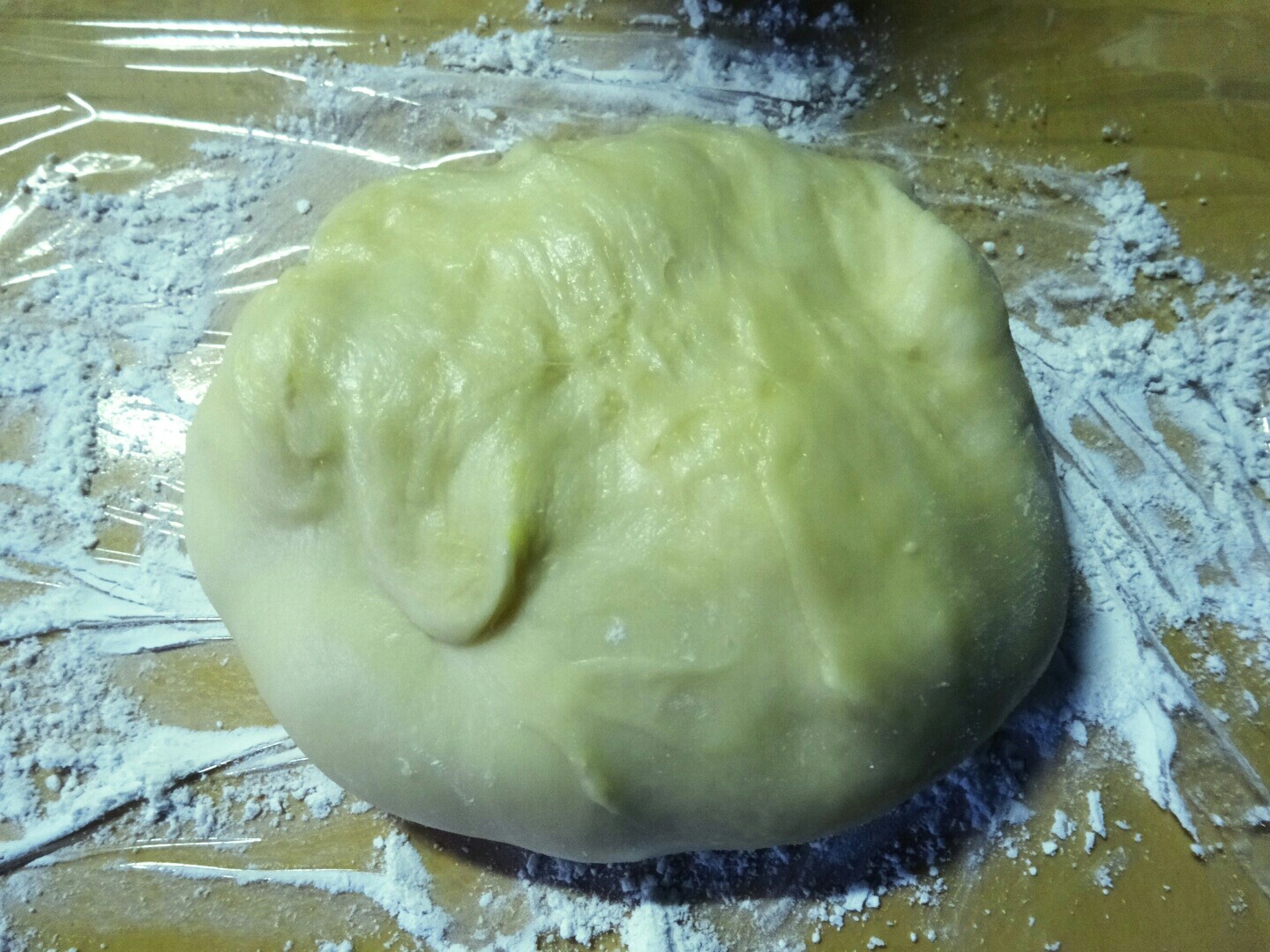 一次発酵させた生地。思ってたよりも手にくっつきます。