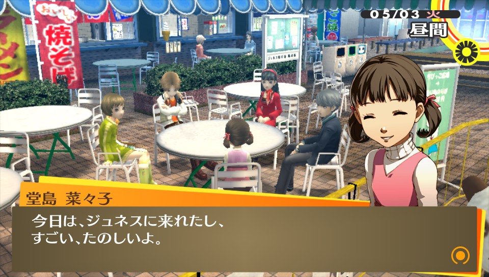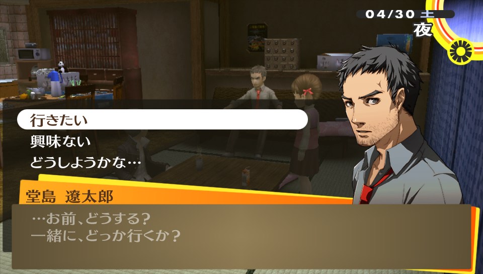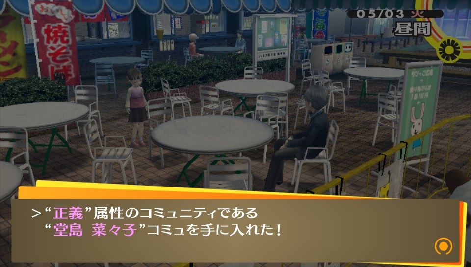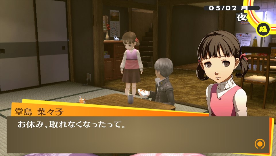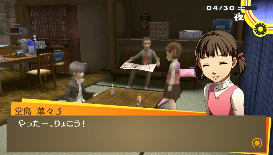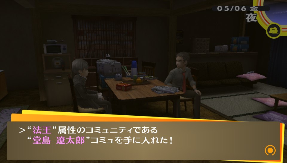 家族旅行 ★ゲーム ペルソナ4ザ・ゴールデン 2014年07月02日 最近、疲れからか夜ご飯を食べてはすぐ寝ちゃう牛おじさん。現在のゲームファクターはペルソナ4Gと少々のニジカノぐらい。あとはソーシャルのADVをちょっぴりやってる位。これは、なかなか面白いので終わったら感想あげたいと思います。対戦もの、とかくFPSなんかもやりたいのですがゲーム熱の低下で飛び込めない感じです。(レッドブル飲んで翼もらわないと…)Halo4も買ったはいいけど積みゲーになっちゃってますし。あかんね。前回の続き。堂島さんと菜々子ちゃん、そしてオレという家族三人水入らずで旅行に行くという鼻血もののイベントに向かうお話。(以下、ネタバレ含むのでページを折ります。※ネタバレ注意) ▼あたたかい家族愛 ナナコンという言葉があると菜々子ちゃん大好きな友人に聞いたけどそんな言葉が出来ちゃうのも分かってきちゃう今日この頃。児ポ法はP4Gを回収した方がいい!手遅れになっちゃう!オレが!w りょこうにいきますか? はい →YES ぐらいの質問である。行かない訳がないし!旅費全部出しますから連れてってください!お願いします!堂島さんの背中も流しますからッ!(鼻血 アトラス貴様あぁああああ!!!堂島さんのお仕事の都合により旅行は中止に…。若いやつが病欠したからオレが出ないととやさしい堂島さん。P4U2は買うかどうか正直言うとあやしい所だったけど、買って足立のやつはボコボコにしたいと思います(・∀・)! 旅行が中止になって落ち込むのはオレだけじゃなく、菜々子ちゃんも同じ。なので、みんなで来たがっていた近くの大型スーパージュネスへ。たかがスーパーに連れてきただけなのに、なんて健気な子… !!? まさかの菜々子ちゃんコミュを手に入れてビックリ。それにしても正義属性なのはかわいい=正義ってことですね?w予想してなかった菜々子コミュにより堂島さんコミュも期待! あくる日、帰宅した私はこの言葉で涙が流れたよ…おかえりってあたたかい言葉だなあってしみじみ感じた。愛する人に迎えられるのってこんな幸せなのかなと、結婚について考えさせられる場面でした。 堂島さんルートに到達!アトラスさん、信じてましたよ…コメントでマリーは優先してコミュやった方がいいと教えてもらったけど、堂島さん優先するっきゃないんだがw P3は一周しかしなかったけど、(それでも今でもやってみたいコミュはある) P4Gは2周とかしちゃいそうな。▼女子も大満足なイケメン率このゲーム、男子にも女子にも人気のあるゲームだと感じているけど女子人気があるのもまず主人公がイケメンだし、堂島さんは言わずもがなだし、とにかく格好いい男キャラがいっぱい出てくる。 サッカー部の長瀬くん。クールなキャラで彼を慕い、練習終わるまで待ってると名乗りあげる女子を前にして迷惑だとバッサリ。どうも彼は思うにフォモフォモしい気配を感じるんだけど… やっと出てきた編み物好きな少年(のはず) 巽 完二。なんか彼もフォモフォモしい完二(かんじだけに)で、個人的にまさか、アトラスさん?そんなはずないよね…?と思ってたら アトラス貴様あぁあああああ!!!いやあ、完二はP4Uの時の苦手な投げキャラ&無敵技の継続の長さで大嫌いだったんですが考えをあらためましたよ(マテしかし、これで本当に編み物が好きなのか?w▼雑感 最近いきなり"dデータ連動"ボタンとかいう文字が出てきてなんだろう?と思って押してみると… 今までのペルソナシリーズの歴史(番組)が観れました。今回の舞台がマヨナカテレビというテレビの中だからだと思うけど、これは良いシステムだなと。サマナーシリーズとかだと難しそう。 トロフィー好きだけど1周目は攻略とか見ないでプレイしてます。ふらっと見えるトロフィーだけ見てみたら、ペルソナ全書コンプとか見えたけど何かの間違いであろうか。そうに違いない。前作は強いペルソナを作ろう!と特に思わないでもクリアできたけど(難易度イージーだったってのもあるだろうが)、デビルサマナーだとしっかり強いペルソナ(仲魔)を作らないとダメだった。自分も英雄 ヨシツネを作ったりしましたが、作るのに結構苦労したので図鑑コンプリートは相当厳しいよね…と思うのだがw それはそうと未だに釣りができません\(^o^)/ PR