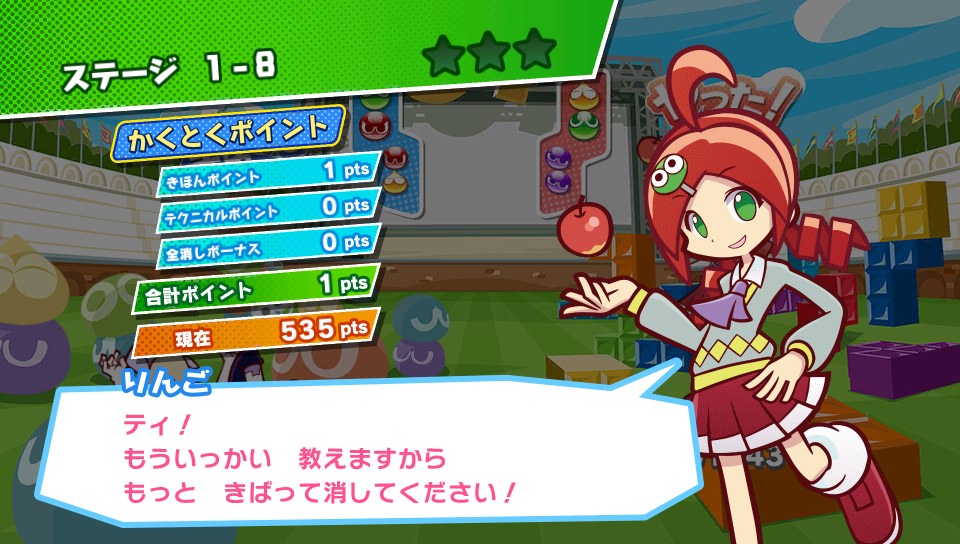 ぷよぷよテトリス ★ゲーム 雑記 2014年02月06日 予定どおり購入。3DS版を買う予定だったけど迷った結果LLじゃないので画面が広いVita版にした。4人対戦でも見やすそうだし。で、早速アドベンチャーモードやってみたけどぷよぷよ下手すぎてヤバい!ぷよ面が出てくるまではトントン進んでたのに出てきたら牛歩の進み具合に。 (これでもきばって消してるんじゃよ…)ちなみにアドベンチャーモードのお話はものすごく面白くないwぷよぷよの漫才久しぶりだけど楽しめない歳になってきたのかしら(; ´∀`)オリジナルルールはとりあえず全部のルールやってみて、ぷよテトミックスが地雷かと思ったけどこれがなかなか面白い。テトリスもぷよぷよもどっちも落ちてきて画面わちゃわちゃするけど、ミックス連鎖とか起こると熱いです。オン対戦一回このルールでやってみたけどよい塩梅でした。ただ、お互いに初心者だったからか一度の対戦が長く感じた。一試合の勝負つくのに20分掛かったwあとは一回やっただけだけどビックバンルールは微妙…。やってて気持ちいいけど果たして対戦になるのかはてさて。この辺はまだちょっと触った程度なのでまた遊んで感想を述べたいところ。ぷよテトでパズルゲームのコラボが流行ってルミネスメテオスとかパネルでポンPokerSmashとか出たら嬉しいな。後者はほとんどパネポンだけどw・ジェットロケットプラネットアドベンチャー (3DS)公式ホムペのShin''enの文字に釣られて買っちゃったけど買って大正解。最初から触り心地のよいアクションでアクションゲーム好きならやるべしなタイトルになること請け合い。ただ楽しいアクションってだけじゃなくて敵を倒したら自分(プレイヤーじゃなくて3DS画面)の方に飛んできて、3DSの立体描写を活かそうとしてるのが垣間見えるのが好印象。去年もソリティ馬、今年はロケプラと何気に3DSのDLタイトルはひっそりと面白いものが配信されてますね。公式の紹介動画をぺたぺた。変な顔の主人公だとか思ってスミマセンでした… PR
