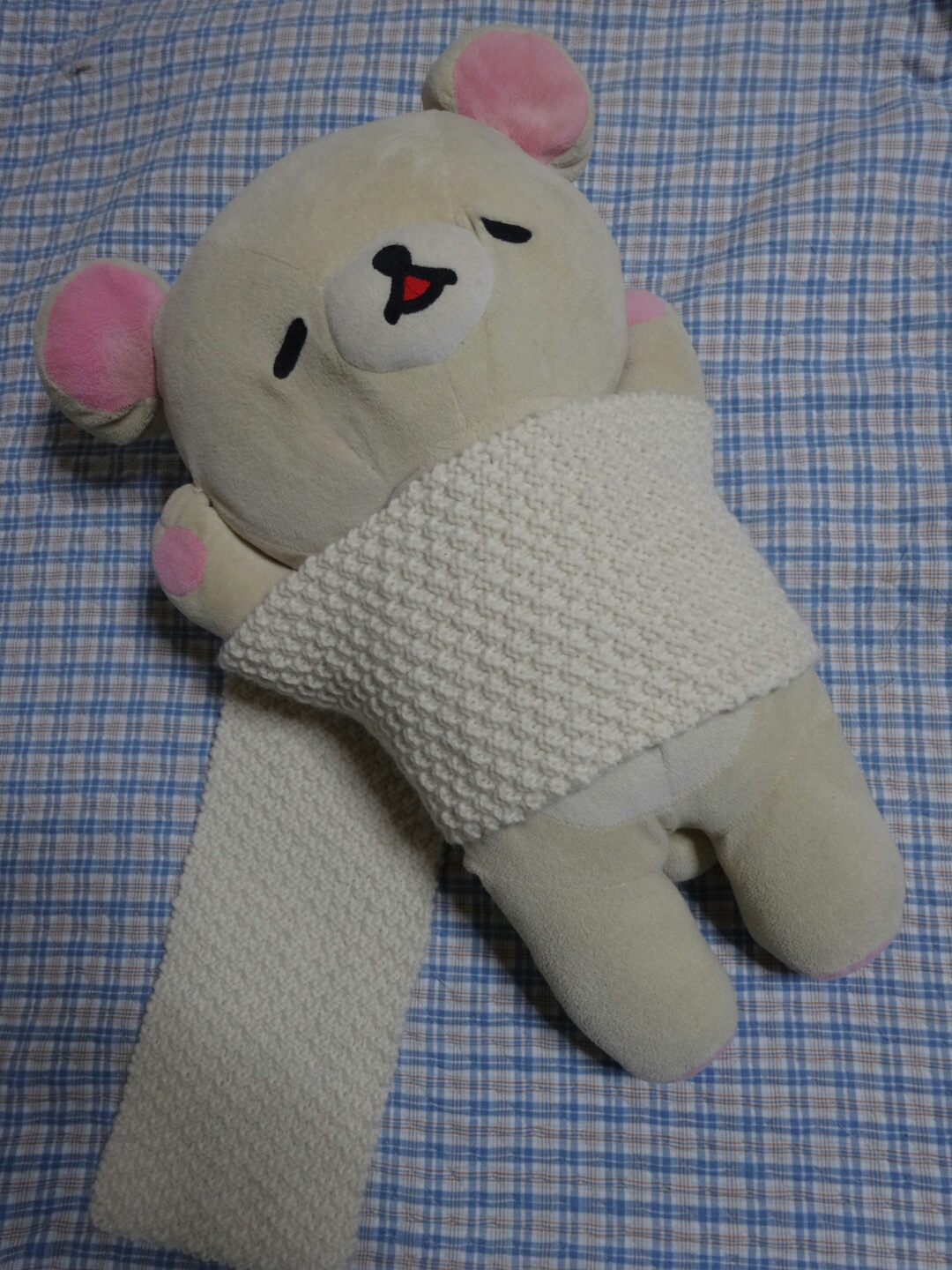 かのこ編みのマフラー完成 ★日常 編み物 2014年02月10日 ようやくかのこ編みのマフラーができました(30目×358段)前も言ったけど触り心地がモコモコしてて好き♪2目ゴム編み、なわ編み、かのこ編みとしてきたけど一番好きな編み目ですね。編むのは一番大変だったけど、編み目によって伸縮の仕方だけじゃなく触った感じも全然変わるんだなと分かって、かのこ編み楽しかったです。ところどころ編み目が大きくなっちゃってるのは下手っぴな証拠なんだろうなあ…編み物得意なお友達は上手いと言ってくれるけど、お世辞ましましだと思うし。自分が編んだもの以外あんまり見たことないので、他の人が作った作品ももっと見たいトコロ。近所に貸しスペースに手芸作品を並べてくれる所(レンタルボックス的な感じ)があるので気になっております。自分の作品も置いてもらえたら嬉しいけどまだまだよね。でも、下手だけど色んな人に見て触って欲しくなるんだねぇw棒針より輪編みの方が楽な感じがする今日この頃。棒針編みのスキルも上げたいけど、次は挫折しかけてる靴下編みを再開する予定。またしても拍手コメントで助言をいただいたので靴下編み頑張らないと。糸を休ませる道具ってのがあるらしいので明日は手芸店に推して参るっ!拍手コメントどうもありがとうございます♪ PR
