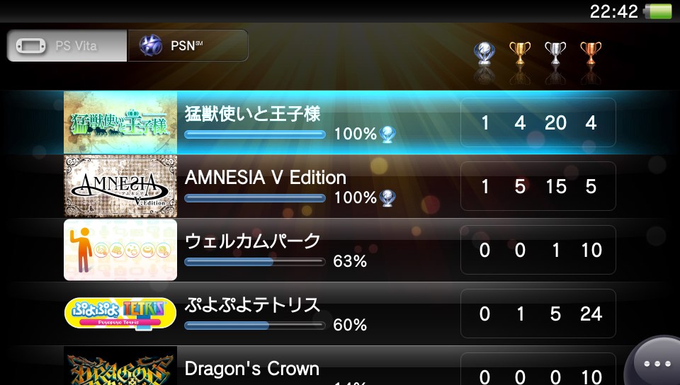 最近知ったウルテク ★ゲーム 雑記 2014年02月27日 Vitaだとトロフィーの並び順を取得率が高い順に並べられる!?全然気がつかなかったこの仕様、PS3だと出来ないのにVitaだと出来るなんともステキシステム。なんですりーさんだと出来ないんだろうwトロフィーや実績気にしないゲーマーさんもいるけど自分はちょっぴり気にします。だって、好きなゲームがトロコンだったり実績コンプしたら嬉しいもの ゆたをぷよぷよテトリスのアドベンチャーモードの達成率を100%にしましたっ♪このゲームのトロフィーは取りやすい。けど、達成感もあるという良トロフィーだと思う。しかし、テトリスにも全消しってあったのね!たぶん自分の生涯テトリス時間は3桁は行ってると思うけど今まで一度もやったことないよ…(; ´∀`) 最近はアドベンチャーモードの影響かテトリスだけじゃなくぷよぷよの面白さにも気づいてきました。カエル積み勢だったけど自分で狙って連鎖できると嬉しいもんだね。3連鎖でドヤ顔しててレベル低いけどそれにしても上の画像、汚い階段である。しかも微妙に間違ってるし…囲碁や将棋みたいに形を見るとその人の実力もある程度分かるのかな。自分のは階段積みをしようと悪戦苦闘してるのがうかがえる。とくに端っこw なんとかアドベンチャーモードクリア出来たのであとはのんびりぷよっとテトるとして気になっていたやつを購入。特に予約とかしてなかったけどマウスパットとストラップ付いてきた。うさぎのストラップはデカすぎwあとこれも知らなかったんだけど、3DSのタイトルでスクリーンショット撮るシステムが搭載されてないタイトルでも、Miiverseのコミュを介するとスクショ撮影することが可能なのね! つながる新天地はスクショ機能ないんだけどこのとおり!なんか顔の輪郭がバタくさくて性別どっちにしようか迷うねw女の子キャラなら顔の輪郭髪型である程度ごまかせそうだし。でも、今回のは婿候補より嫁候補の方がよさそうだし。むむむ… PR
